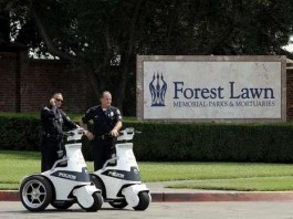 Sicherheitskräfte vor dem Forest Lawn Friedhof.