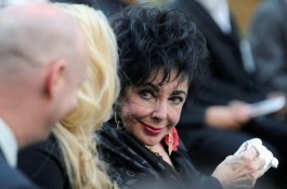 Elizabeth Taylor trauert um ihren Freund und wischt sich die Tränen weg.