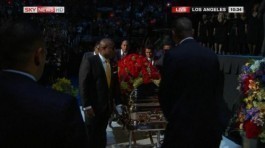 Auf dem Wege auf dem der Sarg zu Beginn der Trauerfeier in die Halle getragen wurde, verlässt er diese nun auch wieder. Auf der Leinwand im Hintergrund werden währenddessen Bilder Jacksons eingeblendet. Auch Bilder der Fans am Time Square werden gezeigt. Auf der Bühne im Staples Center selbst steht ein leeres Mikrofon, dahinter ein Bild des King of Pop.