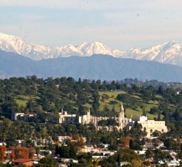 Ein bild aus der luft des Forest-Lawn-Friedhof in Glendale, Kalifornien.