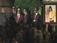 Die Eröffnung an dem 07.07.2009 Nach einer kurzen Eröffnungsrede begann die Trauerfeier mit wenigen Minuten Verspätung im Staples Center. Nachdem der Sarg des Verstorbenen in das Staples Center gebracht worden und vor der Bühne aufgestellt worden war, ging das Spektakel los. Zu Beginn sang ein Gospelchor „Halleluja“ und „We are going to see u again“. De bewegte Menge jubelte.