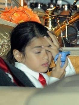 Die Jackson-Kinder wurden in einem großen Bus nach Pasadena gebracht. Blanket wirkt müde, aber gefasst.