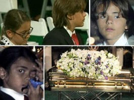 Michael Jacksons fünf Brüder trugen den Sarg außer Sichtweite der Kameras in das Pracht-Mausoleum, wo zwei überlebensgroße Porträts des „King of Pop“ aufgestellt waren. Jacksons zehnjährige Tochter Paris brach in Tränen aus. Gemeinsam mit ihren Brüdern, dem zwölfjährigen Prince Michael und dem siebenjährigen Prince Michael II., legte Paris die Juwelen besteckte Krone auf den Sarg. Zudem haben die drei Kinder US-Medienberichten zufolge ihrem Daddy einen letzten Liebesbrief geschrieben, der in den Sarg gelegt wurde.