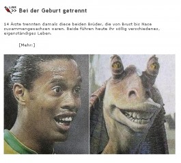 14 Ärzte trennten damals diese beiden Brüder, die von Brust bis Nase zusammengewachsen waren. Beide führen heute ihr völlig verschiedenes und eigenständiges Leben!! Mit Erfolg!!!