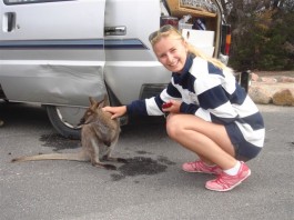 wir haben in der bay auch delfine schwimmen sehen - im park wallabys gesehen und die "parkranger" hatten ein wombat als haustier...