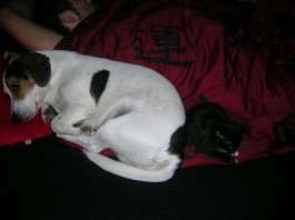 Und das sind nun Herki (der "Hund" - also das, das fast so aussieht wie einer *grins*) und Socke (die Killer-Katze!). Herki wird am 21. Oktober diesen Jahrens 5 Jahre alt, tobt und benimmt sich aber immer noch so wie ein junger Welpe ;-) Und Socke ist im Juli 2006 geboren, ist also noch ein junges Kätzchen - Hat aber heute schon tapfer ihre zweite Maus gefangen und ist auch sonst eine richtige Killer-Katze (die zwar Nuckeln will, aber das lassen wir jetzt mal aus.. *grins*)